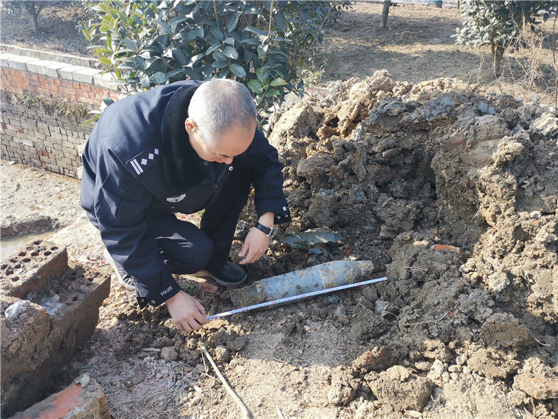 南京市公安局特(巡)警支隊(duì)接報(bào)后,迅速指令安檢排爆大隊(duì)專業(yè)排爆特警前往處置。經(jīng)現(xiàn)場(chǎng)檢查,確認(rèn)挖出來(lái)的是一枚戰(zhàn)爭(zhēng)年代遺留下來(lái)的榴彈,長(zhǎng)46厘米,彈徑12厘米,排爆特警在先期處理后,將其安全轉(zhuǎn)移。