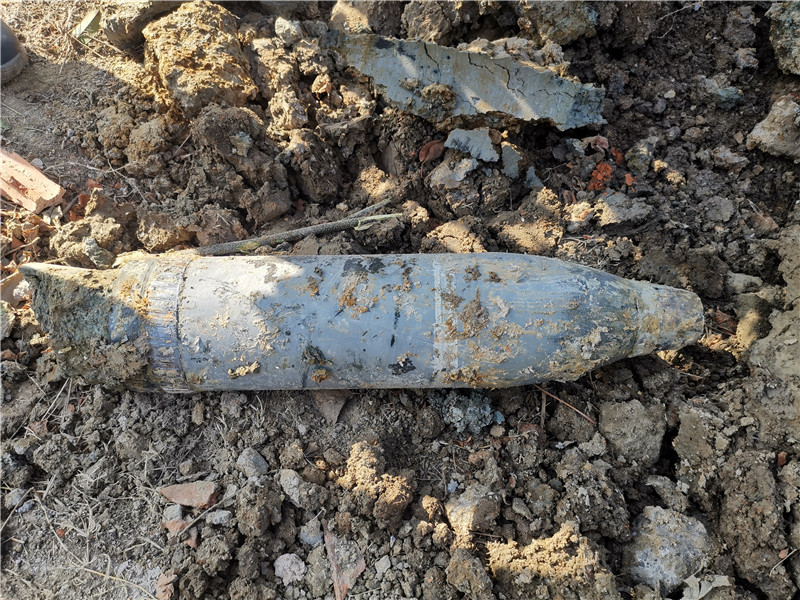 村民清理魚塘挖出一枚炮彈