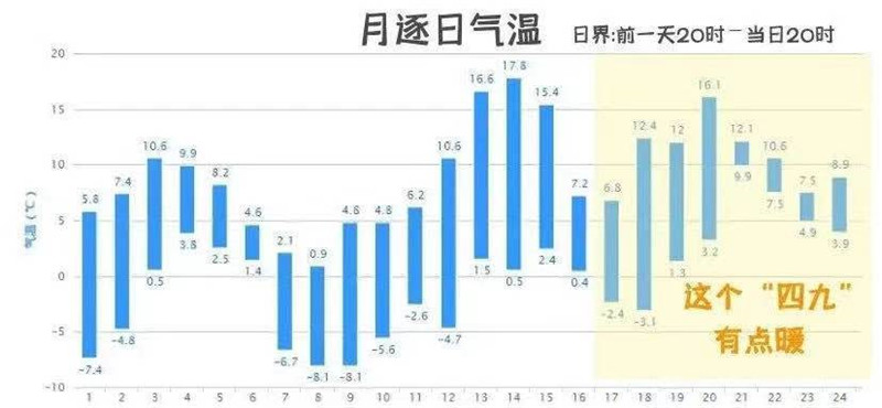 1月25日是“四九”的最后一天。俗話說“三九四九冰上走”,但今年的“四九”似乎不太冷。以南京為例,與“三九”時期動輒-6℃到-8℃的嚴寒相比,“四九”的最低氣溫-3℃左右,氣溫友好許多。早晚的溫差也不大,體感比較舒適。25日白天,全省大部最高氣溫都在10℃以上,蘇州、南通部分地區(qū)更達到了15℃以上,最高的昆山和太倉都是15.4℃。