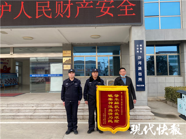 1月27日,受害人章先生專(zhuān)程從南京趕到贛榆,將一面錦旗送到沙河派出所。
