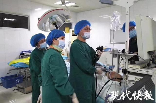 △醫(yī)生檢查蘭大爺腸腔。通訊員供圖