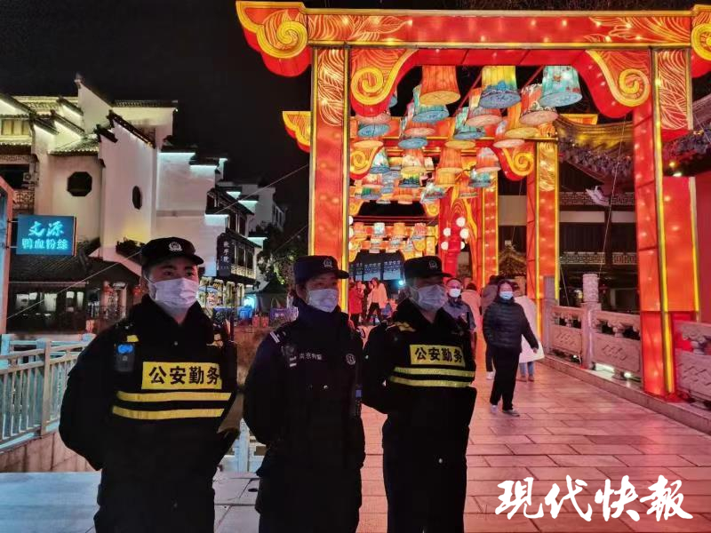 今年春節(jié)期間,夫子廟景區(qū)正常對(duì)外開(kāi)放,區(qū)域內(nèi)廣場(chǎng)、橋梁、道路均布置燈組,節(jié)日氛圍濃厚,吸引大批市民前來(lái)游玩,給安保及疫情防控工作帶來(lái)巨大的壓力和挑戰(zhàn)。針對(duì)景區(qū)人流量大、人員密集等特點(diǎn),市公安局提前開(kāi)展安全隱患檢查整改,并精心制定方案預(yù)案。據(jù)了解,夫子廟景區(qū)自今年1月起實(shí)施常態(tài)化預(yù)約入園制度,實(shí)行“限量、預(yù)約、錯(cuò)峰、測(cè)溫、戴口罩”進(jìn)入等防控措施。春節(jié)期間,市公安局每天投入1150名警力做好現(xiàn)場(chǎng)治安秩序維護(hù)、交通組織、應(yīng)急處突等安保工作,并配合景區(qū)管理方和志愿者嚴(yán)格落實(shí)入園掃碼登記制度,引導(dǎo)游客預(yù)約游覽、錯(cuò)時(shí)游覽,同時(shí)還投入10組由特警、消防和武警組成的反恐單兵崗,確保第一時(shí)間處置突發(fā)事件。各單位以防聚集、防踩踏、防火災(zāi)、放破壞為目標(biāo),嚴(yán)密各項(xiàng)安全措施,嚴(yán)格履行工作職責(zé),切實(shí)加強(qiáng)秩序維護(hù),圓滿完成春節(jié)黃金周期間夫子廟景區(qū)安保工作。2月12日農(nóng)歷正月初一上午,民警在夫子廟東牌坊入口處發(fā)現(xiàn)有游客擁堵在通道口,便立即上前疏導(dǎo)。民警現(xiàn)場(chǎng)了解到,一些游客到景區(qū)后才開(kāi)始預(yù)約操作,導(dǎo)致滯留在景區(qū)門口。了解情況后,現(xiàn)場(chǎng)警力迅速對(duì)滯留游客進(jìn)行疏導(dǎo),同時(shí)指導(dǎo)游客完成預(yù)約操作流程。民警表示,夫子廟景區(qū)實(shí)行預(yù)約制已是常態(tài)化,希望想要前往夫子廟景區(qū)的游客提前進(jìn)行預(yù)約操作,到現(xiàn)場(chǎng)后憑預(yù)約二維碼即可入園。