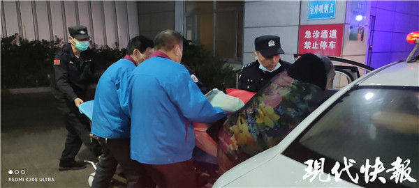 由于報警人位置較偏且道路狹窄,救護車還不能開至家門口,于是輔警們通過警車將兩名患者轉(zhuǎn)移至開闊的道路上與趕來的救護車匯合。將患者轉(zhuǎn)移至救護車后,輔警們帶著患者家屬一同趕往濱江醫(yī)院。