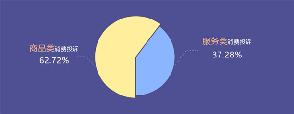 從消費(fèi)類型看,全省12315熱線平臺(tái)受理商品類投訴912件,同比下降58.55%,約占消費(fèi)者投訴總量的62.72%;受理服務(wù)類投訴542件,同比下降59.09%,約占消費(fèi)者投訴總量37.28%。