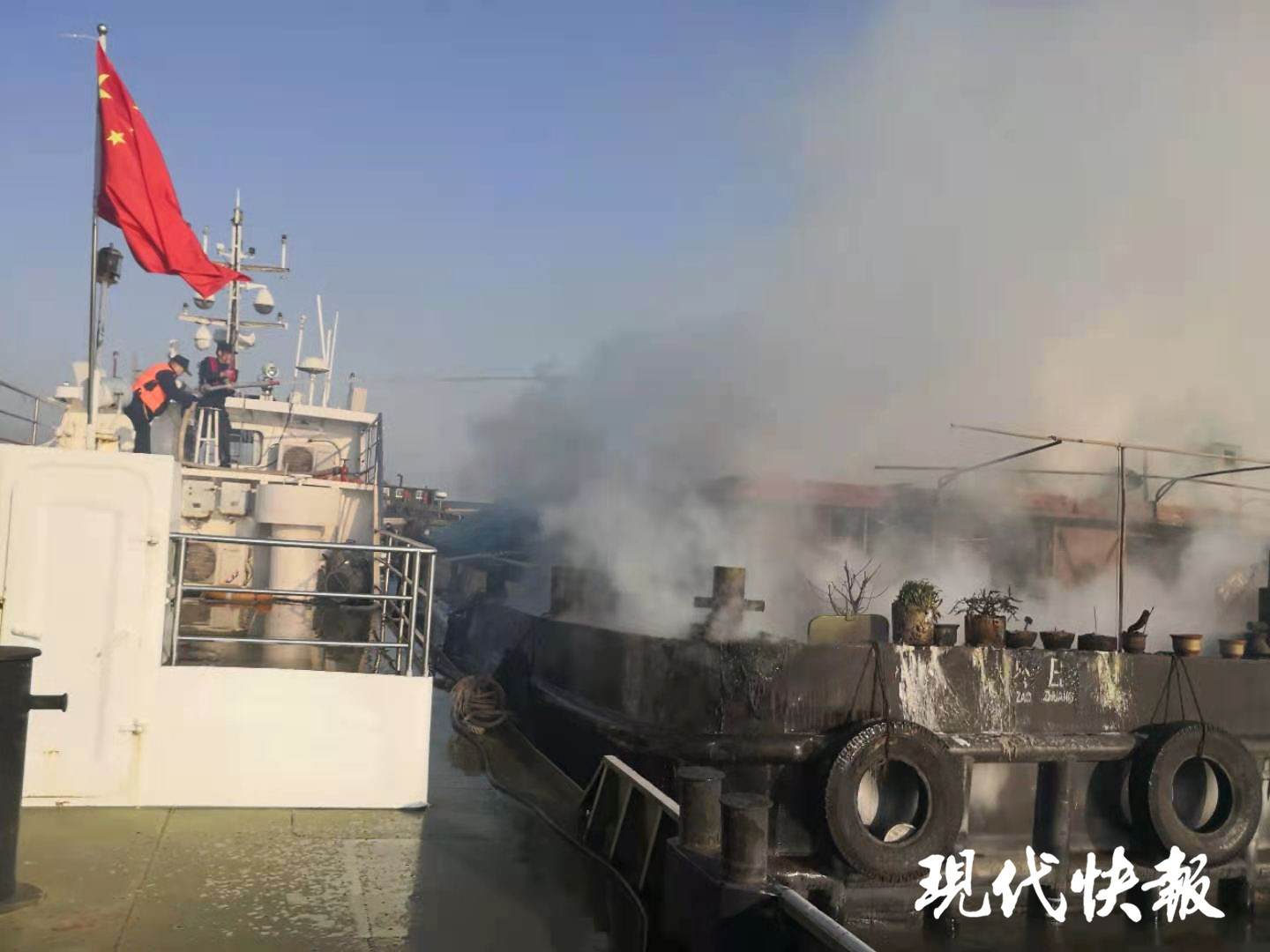 9點(diǎn)29分,航道恢復(fù)正常通航。經(jīng)過(guò)現(xiàn)場(chǎng)調(diào)查,事故原因?yàn)榇熬€路老化自燃引起的生活艙起火。