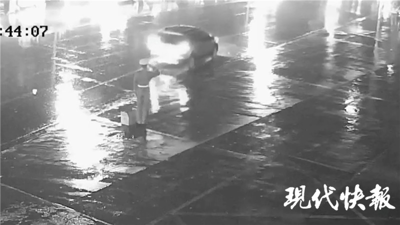 此時,站崗的消防員發(fā)現(xiàn)后,立即抱著箱子追了出去,卻被該女子又推了回來。最后,消防員用一個敬禮目送女子開車離開。