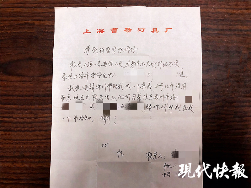 △上海老人寄來(lái)的手寫(xiě)尋親信