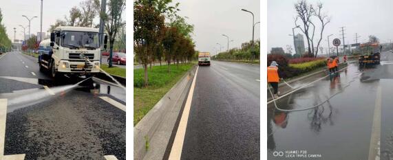 強化降塵力度,常態(tài)揚塵治理。高標(biāo)準(zhǔn)開展灑水降塵作業(yè),出動7臺灑水車、3臺霧炮抑塵車對園區(qū)主次干道灑水降塵、噴霧抑塵,針對園區(qū)在建工地周邊、渣土運輸線路沿線、大氣揚塵監(jiān)測點等重點路段,每隔2小時進(jìn)行灑水降塵作業(yè),不斷提升道路揚塵控制水平;同時延長降塵作業(yè)時間至晚間22點,常態(tài)化開展夜間道路揚塵防治工作,最大限度抑制道路揚塵,時刻保持道路濕潤清潔、路見本色。