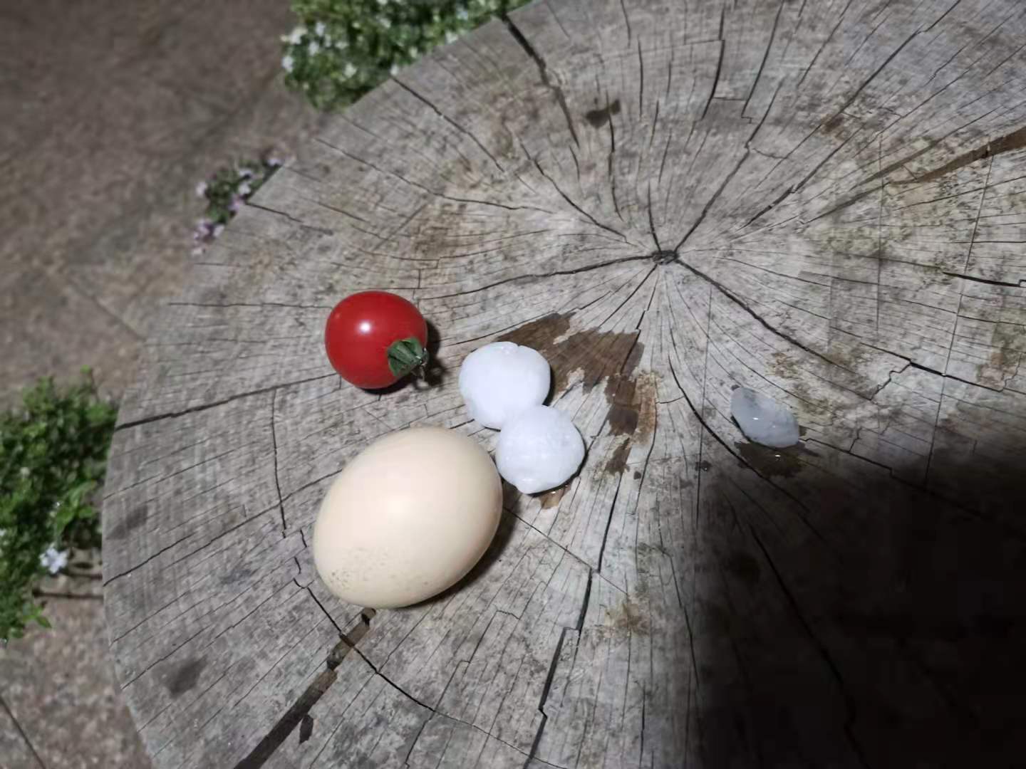 4月30日晚11點左右,蘇州吳江盛澤地區(qū)有居民發(fā)現(xiàn)屋外落下冰雹,現(xiàn)代快報記者從報料人提供的照片上看到,此次落下的冰雹個頭較大,部分直徑約有兩至三厘米,還有居民拿來雞蛋和圣女果與撿拾的冰雹進行同屏比較。