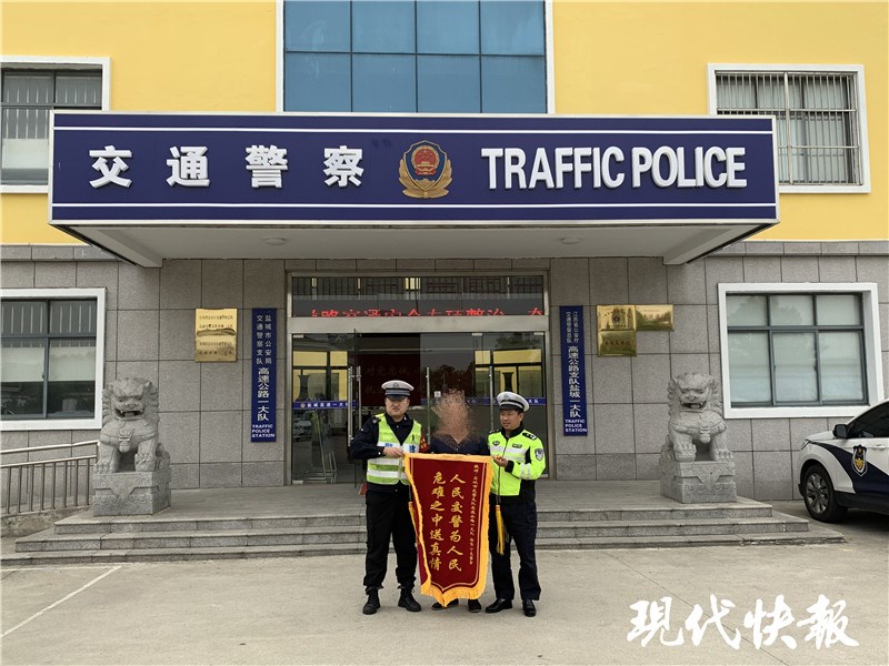 5月6日中午,經(jīng)過搶救和治療,駕駛員王師傅康復出院了,他特地在當?shù)刳s制了一幅錦旗,上面寫著:人民交警為人民,危難之中送真情,專門送到鹽城市高速一大隊,感謝高速民警的救命之恩。(通訊員供圖)