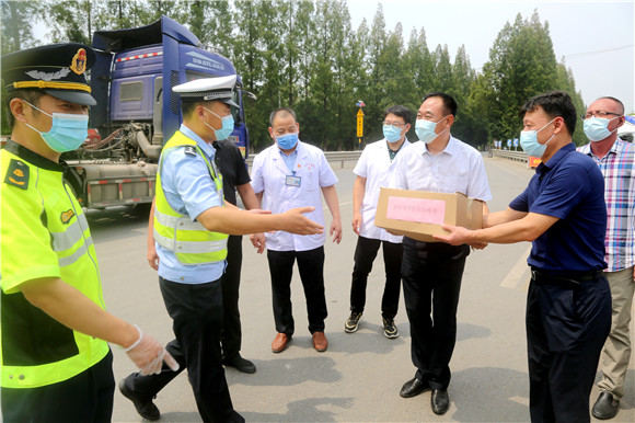 (孫宜方 彭雅楠 )8月10日上午,江蘇邳州市東高速出入口,這里負責防疫值勤的一線防疫人員正在緊張為過往車輛、行人登記、消毒、測量體溫,忙碌中迎來了一支特殊慰問團隊,邳州市中醫(yī)院院長周亞東帶領相關科室負責人來到這里,為這里防疫執(zhí)勤的人員免費送來了幾百袋中藥防疫湯劑,用于執(zhí)勤人員疫情預防。當天,周亞東院長一行還奔赴邳州港上公安檢查站,為那里的防控執(zhí)勤人員也送去了防疫中藥湯劑。