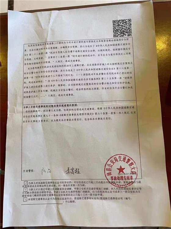 最終,交警部門的事故責任認定,道路清掃車駕駛員史某,駕駛改變機動車尾部機構的機動車上道路行駛,且在道路養(yǎng)護施工時未按照規(guī)定設置規(guī)范的安全警示標識和安全防護措施,承擔本次事故的次要責任。