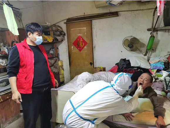 “疫情不退,我不退”。這是張乃均的錚錚誓言。每天傍晚時分結(jié)束了一天全員核酸檢測工作的他,總是拖著疲憊的身體,又匆匆?guī)ьI醫(yī)護人員來到殘障村民家中,上門核酸檢測。“關愛殘疾人理應受到同等的待遇,全員核酸應檢盡檢他們用心,我們更要出力,全民防疫把溫情送到村民家。”