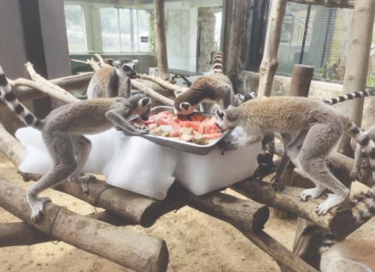 近來淮安連續(xù)的高溫,讓很多人熱得吃不消,不過生活在動物園里小動物卻過得相當愜意。為讓這些可愛的小家伙能度過一個舒適涼爽的夏天,動物園的工作人員費盡了心思,每天早早就準備好了冰鎮(zhèn)水果、冰凍綠豆湯,還給小動物開啟了空調。6月22日,動物園又采購了一批大冰塊,專門用于為小動物防暑降溫。