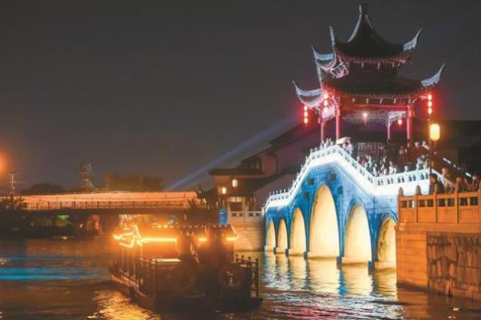 開幕儀式后,與會嘉賓依次夜游虎丘、山塘河、山塘街,全方位欣賞沿途古跡風情,實地領略蘇州大運河文化遺產的經典韻味,感受古典與現(xiàn)代交相融合的大運河蘇州段景觀與人文。