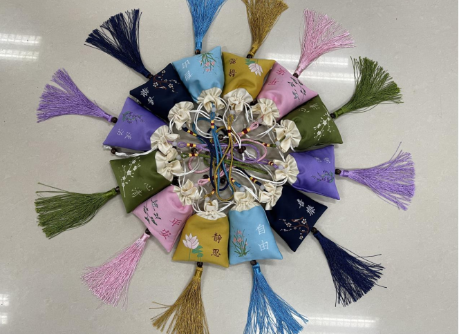 中藥香囊起源于中醫(yī)“衣冠療法”,用以防病治病。而本次活動(dòng)贈(zèng)送的香囊是由丁香、艾葉、白芷、蘇葉等十幾種中藥材制作而成。于外能夠驅(qū)蚊除蟲、辟邪驅(qū)瘟,于內(nèi)可以清心醒神、防病未然。中藥香囊能隨身攜帶,也可將其放置于室內(nèi)。民間有“戴個(gè)香草袋,不怕五蟲害”之說,而現(xiàn)代研究表明,中藥成分從呼吸道進(jìn)入人體,氣味可興奮神經(jīng)系統(tǒng),刺激鼻黏膜、使鼻黏膜上的抗體——分泌型免疫球蛋白A含量提高,對(duì)病毒和細(xì)菌具有較強(qiáng)的抑制生長(zhǎng)和殺滅作用。