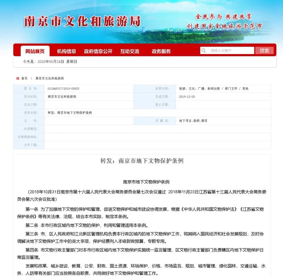記者從《江蘇省文物保護條例》 和《南京市地下文物保護條例》中發(fā)現(xiàn),兩部條例都對建設用地施工前應當進行考古調查、勘探有明確規(guī)定。