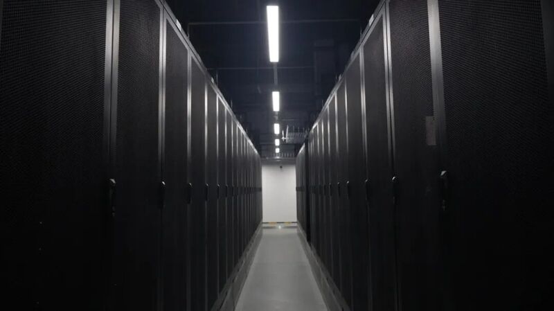 一排排服務器機架延伸至視線盡頭,柵格中的指示燈在黑暗中閃爍,地下冷卻管道靜謐蜿蜒。這座占地80畝的算力“巨獸”剛獲得了它的“心臟起搏器”——一座專為其定制的110千伏變電站。