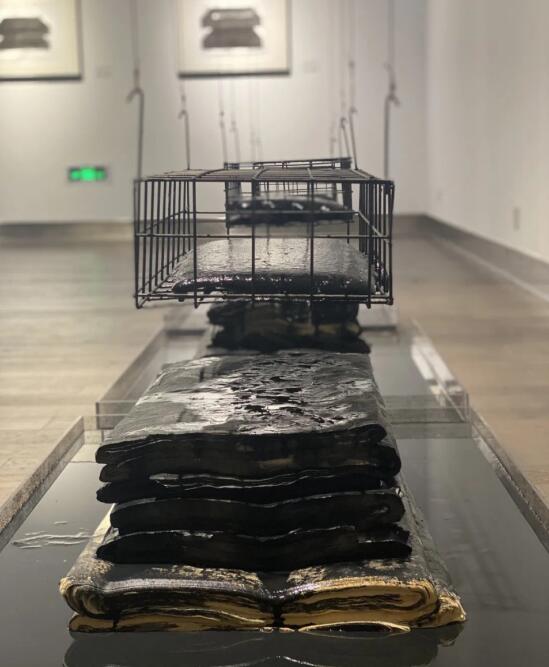 紙垛因?yàn)槟鶋K的融化過程發(fā)生了改變,這是白紙死亡過程并行黑紙誕生的過程。而黑紙誕生卻不像冰塊消失那樣引發(fā)人們的記憶——那曾經(jīng)是白紙。就像一幅完整的寫實(shí)作品,人們更愿意沉浸在被創(chuàng)造物的虛幻圖式。新生物會(huì)掩蓋曾經(jīng)的存在,藝術(shù)有多種可能性,過程比結(jié)果更重要,希望我的作品能給觀眾帶來思考與溫度。最后,鄭凱迪對(duì)幫助過自己的領(lǐng)導(dǎo)、同事和朋友們表示了感謝。他說,在這樣一個(gè)美術(shù)館,這樣的展廳做個(gè)展,誠惶誠恐。希望我做的是一些有意義的事情,能夠一直延續(xù)下去。