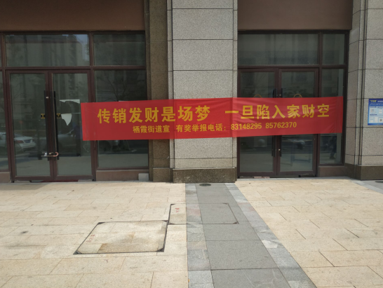 7月5日,南京市棲霞區(qū)棲霞街道石埠橋村組織開展“拒絕傳銷 從我做起 舉報傳銷 人人有責”活動,社區(qū)積極聯(lián)合街道、市場監(jiān)督管理局等相關部門?;顒又袘覓齑驌魝麂N宣傳條幅共4條,借助社區(qū)掌上云社區(qū)微信群宣傳打擊傳銷成果,揭露非法傳銷犯罪活動的特點規(guī)律、其帶來的危害和相關鑒別常識,社區(qū)工作人員與平安志愿者一道發(fā)放非法傳銷宣傳材料“致社區(qū)居民一封信”,發(fā)放防范非法傳銷宣傳材料200余份。
