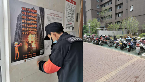 為貫徹“安全第一,預(yù)防為主”的指導(dǎo)方針,消除小區(qū)樓道內(nèi)及戶(hù)內(nèi)安全隱患,杜絕因電動(dòng)車(chē)在室內(nèi)及樓道內(nèi)充電造成的安全事故,邁皋橋物業(yè)各自管項(xiàng)目處自2020年5月開(kāi)始,聯(lián)合社區(qū)和轄區(qū)派出所住戶(hù)排查電動(dòng)車(chē)上樓充電行為。物業(yè)工作人員通過(guò)發(fā)放“致業(yè)主的一封信”,告誡小區(qū)居民各樓幢門(mén)廳、消防登高處、各層樓道內(nèi)嚴(yán)禁停放電動(dòng)車(chē),一旦發(fā)現(xiàn)樓道存在電動(dòng)車(chē)違規(guī)停放、充電行為的,工作人員會(huì)及時(shí)制止并組織清理,對(duì)于拒不清理的,按照有關(guān)規(guī)定向公安消防機(jī)關(guān)或轄區(qū)派出所進(jìn)行匯報(bào)處理,同時(shí)引導(dǎo)居民將電動(dòng)車(chē)停放在地下車(chē)庫(kù),那里有物業(yè)早已提前安裝好的自費(fèi)充電裝置。