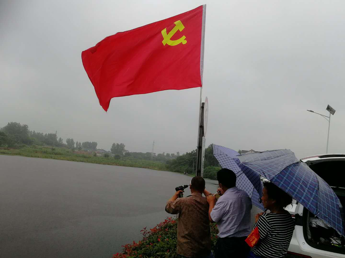 在大荊村水庫、唐家窯水庫就有這樣一群人冒著閃電和暴雨,巡坡排險......他們是荊劉村黨員志愿者“孺子牛”防汛先鋒隊。每天天不亮開始直到深夜,他們腳踏泥濘,俯首躬行,在防汛最關(guān)鍵的時期,身著雨衣,冒著大雨,清理水庫溢洪道內(nèi)堵塞物,疏通溢洪道,及時保障溢洪;巡查壩埂的散浸和滲水點(diǎn)。同時逐戶排查村民房屋安全隱患,讓黨旗在防汛一線高高飄揚(yáng)。