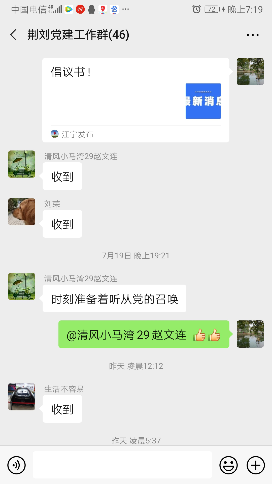 7月18日起,南京市啟動防汛Ⅰ級應(yīng)急響應(yīng),江寧區(qū)谷里街道荊劉村黨總支聞“汛”而動,全面升級“作戰(zhàn)”模式,進(jìn)一步部署物資儲備、充實(shí)防汛隊伍、24小時不間斷排查背水坡及坡腳,嚴(yán)陣以待,筑起防汛戰(zhàn)斗堡壘。