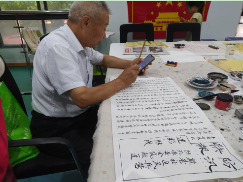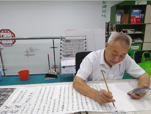 張廣立老師是江蘇省書(shū)畫(huà)聯(lián)誼會(huì)會(huì)員、南京市書(shū)法家協(xié)會(huì)會(huì)員,還是我們殷巷社區(qū)的模范志愿者。在張老的建議下,社區(qū)在黨群服務(wù)站門(mén)前建起4米長(zhǎng)“宣傳欄”。三年以來(lái),張老師堅(jiān)持在社區(qū)黨群服務(wù)站二樓以書(shū)法、繪畫(huà)、象棋等形式服務(wù)周邊群眾,還免費(fèi)為他們提供書(shū)法、國(guó)畫(huà)輔導(dǎo)。以往,張老師每期都會(huì)帶領(lǐng)學(xué)員們一起用心選材、精心構(gòu)思布置宣傳欄。圖文并茂、主題鮮明的宣傳欄不僅激勵(lì)了大家相互學(xué)習(xí)的精神,而且起到以文載道、以文化人的良好作用。