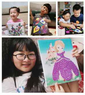 綠樹陰濃夏日長,日盛三伏暑期熏。此次活動中,東山社區(qū)線上線下齊發(fā)力,老師首先通過微信活動群向大家普及分享關(guān)于大暑節(jié)氣的視頻,孩子們通過視頻,深入了解大暑節(jié)氣的由來,感受到祖國二十四節(jié)氣傳統(tǒng)文化的魅力。隨后,孩子們來到社區(qū)精心挑選了自己喜歡的圖案及材料包并參與到紐扣畫的制作過程中,制作中,孩子們在家長們的幫助下充分發(fā)揮自己的想象力和創(chuàng)造力,用自己靈巧的雙手把五彩斑斕的小紐扣用膠水固定在畫紙上,小公主、宇宙飛船、kitty貓,不一會兒,一幅幅精美的作品便展現(xiàn)了出來,孩子們互相分享了自己的作畫心得,臉上露出了開心的笑容。