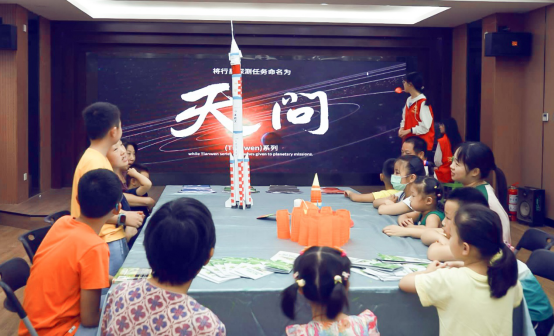 現(xiàn)場(chǎng)南航志愿者播放了“天問一號(hào)”科普視頻,并結(jié)合自身專業(yè),向社區(qū)的孩子們普及了航天知識(shí),講述航天故事,傳遞航天報(bào)國精神?,F(xiàn)場(chǎng)氣氛十分熱烈,孩子們爭先恐后地向志愿者提出自己的疑問,“火箭要多久才能飛到火星上去?”“制作一艘真正的火箭要用多長時(shí)間?”“天問一號(hào)在火星上該怎么向地球發(fā)送信息?”南航的學(xué)生表示:“作為活動(dòng)的志愿者,能夠引導(dǎo)孩子們?cè)谂d趣中學(xué)習(xí),讓航天夢(mèng)播種在孩子們的心中,我們也很有成就感。”