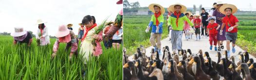 感受田園氣息,體驗天然氧吧;體驗農(nóng)事樂趣,品味農(nóng)耕文化。在青少年們正式下農(nóng)地體驗農(nóng)事樂趣之前,阜莊村生態(tài)循環(huán)農(nóng)業(yè)示范基地農(nóng)事指導(dǎo)員給青少年們講解了下農(nóng)地需要注意的事項,叮囑青少年在下農(nóng)地之前,戴著草帽、穿著雨鞋、拿著手套,確保“武裝齊全”。隨后,農(nóng)業(yè)指導(dǎo)員在田地里拿起水稻和雜草,現(xiàn)場教導(dǎo)青少年分辨水稻和雜草的區(qū)別,并教會他們怎樣才能又快又好的拔草。“小鴨子好可愛啊!”活動中,青少年們還幫助農(nóng)業(yè)指導(dǎo)員一起趕鴨子,在實踐中增進(jìn)青少年對于農(nóng)業(yè)知識的了解。