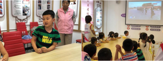 新銅社區(qū)還以八一建軍節(jié)為契機(jī)舉辦了一個(gè)小小的升旗儀式,小朋友們看著影片中解放軍叔叔在天安門前整齊劃一的步伐,都自發(fā)地全體起立,一個(gè)個(gè)站得筆直,看著冉冉升起地五星紅旗敬起了少先隊(duì)隊(duì)禮,大大的眼睛中流露出滿滿的驕傲與贊美,他們用稚嫩的嗓音唱起了國(guó)歌,大家都被孩子們的真誠(chéng)所感染,升旗儀式結(jié)束,活動(dòng)室里掌聲雷動(dòng)。