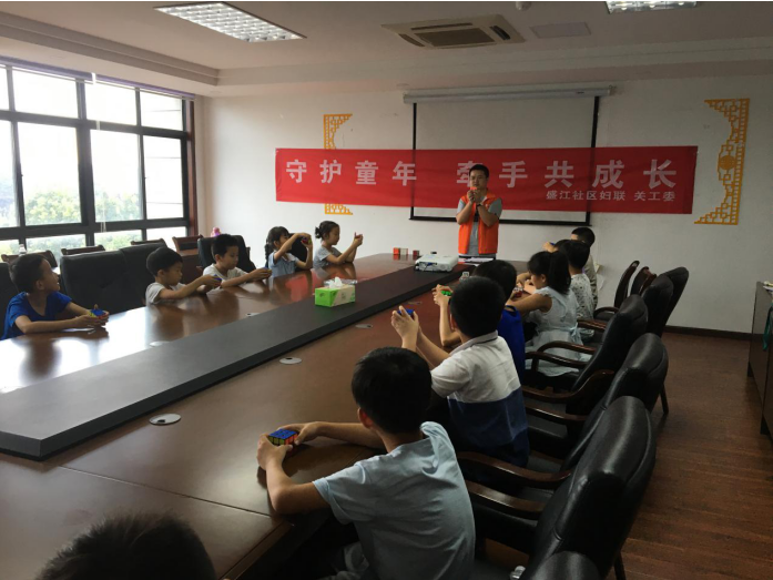 魔方的還原過程是一個集觀測、動作、思維于一體的過程,它的練習(xí)是對意志的磨礪,對于思維能力有極高的要求。為了鍛煉社區(qū)青少年的空間想象能力、數(shù)字運(yùn)算能力、邏輯思維能力、整體觀察能力,培養(yǎng)青少年的動手能力和智力,讓孩子們度過一個富有趣味的暑假。8月1日,南京市江寧區(qū)江寧街道盛江社區(qū)婦聯(lián)、關(guān)工委聯(lián)合馨悅社會工作服務(wù)中心開展第一期暑期魔方興趣班。