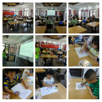好的家風(fēng)家訓(xùn),能助力孩子健康成長(zhǎng),活動(dòng)一開始,老師教孩子們學(xué)了禮儀手操和基本社交禮節(jié),“拍拍手,懂禮儀;拍拍手,懂孝義……”孩子們邊拍手邊唱兒歌,課堂瞬間活躍起來。隨后老師用“最美孝心少年”和身邊的“尊師孝親”榜樣的故事讓大家感悟道德,踐行道德。通過誦讀《家訓(xùn)名篇》和講解《孟母三遷》、《孟母斷織》的故事,讓孩子們理解什么叫家訓(xùn),如何成為優(yōu)秀、知禮的人,活動(dòng)中紅葉社工老師還讓孩子們現(xiàn)場(chǎng)在紙上寫下自己家的家訓(xùn),并交流了各自的“好家訓(xùn)”。結(jié)束上半場(chǎng)禮儀家訓(xùn)學(xué)習(xí),孩子們滿懷期待地開始了下一場(chǎng)文房四寶學(xué)習(xí)活動(dòng)。茶茶國(guó)學(xué)堂上,老師認(rèn)真、仔細(xì)的教授孩子們?cè)鯓游彰P字的方式和姿勢(shì),再一筆一劃、一撇一捺手把手的教孩子們,并發(fā)放書法紙筆,題寫范字,孩子們積極認(rèn)真練習(xí)書寫,一行行稚嫩的毛筆字逐漸呈現(xiàn)在“小小三字經(jīng)”上。