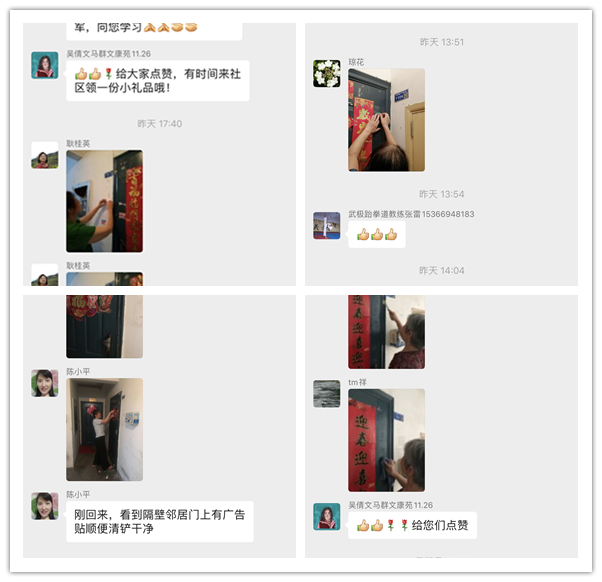 文明創(chuàng)建,黨員先行。社區(qū)通過(guò)掌上云社區(qū)在群里號(hào)召居民自行清理自己門上的小招貼,為文明城市創(chuàng)建添磚加瓦。轄區(qū)黨員們積極響應(yīng)黨總支號(hào)召,紛紛走出家門清理自家或鄰居家門上的小招貼。并及時(shí)在群里分享自己的助力成果,由于黨員帶頭的先鋒作用,居民們也積極加入其中,為文明創(chuàng)建獻(xiàn)上自己的一份力。
