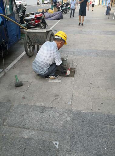 8月4日上午開始,出新工程隊組織兩位專業(yè)人員來到商業(yè)一條街面上排查修復(fù)損壞的路面。只見工人師傅在酷熱的天氣下帶上專業(yè)工具從商業(yè)街面上的蘇果超市前面的路面開始排查,先把損壞的石塊撬開,然后再根據(jù)實際損壞情況填補水泥,最后鋪上完整的石塊敲實。