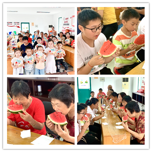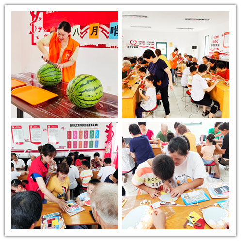 活動現(xiàn)場,工作人員為大家分享了立秋的文化習(xí)俗,還準(zhǔn)備了又圓又大的西瓜,并貼心地為大家切好,大家吃著甜甜的西瓜,有說有笑的相互交流著。吃完西瓜,工作人員還準(zhǔn)備了立秋手工制作材料,老少齊上陣,共同把一幅幅精美的作品完成啦。