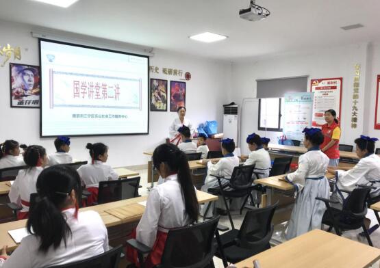 “端身正立,兩臂稍彎,十指并攏,拇指內(nèi)扣,雙手相疊于胸前,男生左手在上,女生反之……此為拱手禮”,活動開始,在國學(xué)老師的引導(dǎo)下,大家一步一步地跟著練習(xí)起來;“右手成拳,表示勇猛,左手為掌,表示德、智、體、美齊備,屈拇指表示不自大,左掌心按貼右拳面,左指尖與下顎平齊……此為抱拳禮。”志愿者帶領(lǐng)孩子們學(xué)習(xí)了平輩之間互敬所使用的拱手禮和抱拳禮。在充分掌握兩種禮儀的表現(xiàn)方式后,孩子們興高采烈地兩兩互敬,學(xué)著古人打起招呼來,在這邊一句“久仰久仰!”,在那邊一句“幸會幸會!”的氛圍中,志愿者和孩子們跟著老師誦讀起國學(xué)詩經(jīng)《小星》……青少年們認(rèn)真地大聲朗讀,朗朗的讀書聲回蕩在課堂里?,F(xiàn)場秩序十分良好,青少年們都全心投入到了活動中。在活動結(jié)束后,志愿者對部分參與者進行了回訪,參與的青少年說道,雖然對一些句子的含義不能深入理解,但在閱讀的過程中能夠認(rèn)識很多生字,已經(jīng)是很大的收獲了。