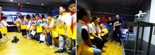 隨后,在志愿者的帶領(lǐng)下,孩子們分為3組,以每組10人的形式參觀了韓博士科技機(jī)器人創(chuàng)客中心。