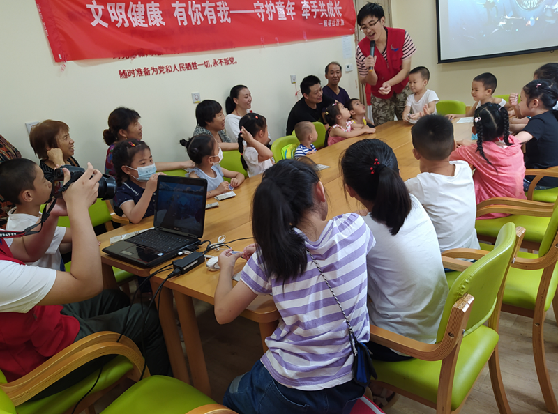 長江江豚,生存在長江里的哺乳動物,鉛灰色的身體,圓滾滾的腦袋,還有像在微笑著的模樣。如今,它們的數(shù)量只有約一千頭。由于人類活動造成的長江生態(tài)破壞,處在瀕臨滅絕的境地。8月11日,江寧區(qū)秣陵街道殷巷社區(qū)開展了“守護江豚之都”主題宣傳活動,江豚保護志愿者走進(jìn)社區(qū),帶領(lǐng)社區(qū)的孩子們探秘長江江豚的世界。