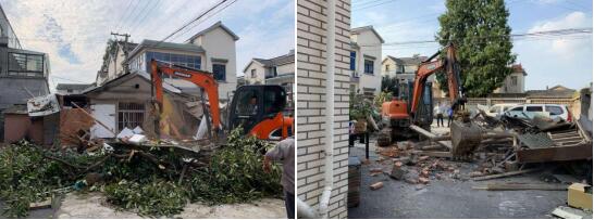 居民小區(qū)違規(guī)亂建嚴重影響了居民群眾的生活水平和社區(qū)的環(huán)境面貌。為保證此次拆違工作順利進行,網(wǎng)格員們仔細排查,按照先勸導(dǎo)后拆除的原則,勸導(dǎo)其同意對私搭亂建進行拆除和建筑垃圾清理。拆違現(xiàn)場,社區(qū)采取人工和機械作業(yè)相結(jié)合的方法進行,調(diào)來挖掘機、鐵鍬等拆違工具,將違章建筑墻體、護欄等拆除出來,并將拆除違建留下的垃圾集中搬運上車,清理出來的雜物裝了整整一大卡車。經(jīng)過一番清理后,社區(qū)環(huán)境逐漸顯露出靚麗的容顏。