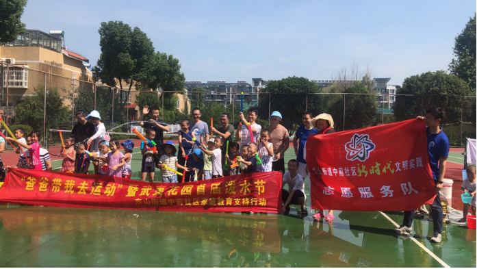 潑水節(jié)是傣族人民最隆重的節(jié)日,無論男女老少都會在潑水節(jié)走上街頭,潑水祈福。為弘揚民族文化,滿足孩子們愛玩水的天性,8月16日上午,江寧區(qū)東山街道中前社區(qū)新時代文明實踐站在武夷花園小區(qū)籃球場開展“爸爸帶我去運動”暨武夷花園首屆潑水節(jié),以“潑水”的方式上演一場別開生面的”夏日狂歡“。