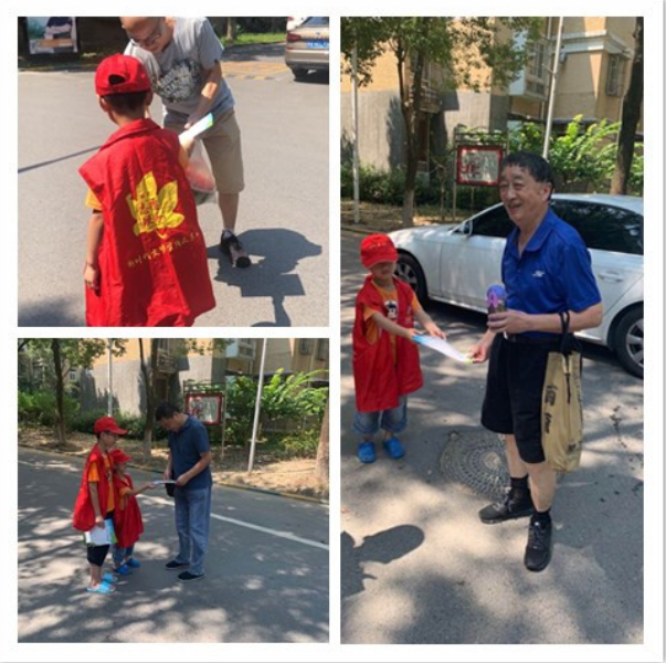 活動前,為了能夠讓孩子們潑水節(jié)玩的盡興,家長們早早為孩子們準備好各種水槍、小水盆、水瓢、小水瓶等工具,有的家中甚至還為自己和家人準備好了泳衣。隨著活動開始,大家紛紛拿好自己的“裝備”,填滿“子彈”,開始了一場你來我往的潑水戰(zhàn)斗。有些孩子們起初有些害羞,玩熟后便倆人或三人為一組,分別進行“戰(zhàn)略部署”,“小心我的炮彈攻擊!““哈!我才不怕你!看我的!”孩子們稚嫩的對話,展現(xiàn)了現(xiàn)場激烈的戰(zhàn)況,大家你來我往,互不示弱,玩的不亦樂乎?;顒咏Y束后,小小青少年們還身穿新時代文明實踐志愿者的馬甲,向社區(qū)過往的居民群眾發(fā)放文明城市創(chuàng)建的倡議書,鼓勵、動員大家積極參與到文明城市的創(chuàng)建中來。