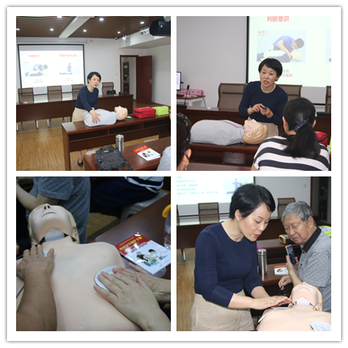 培訓(xùn)課程以ppt的形式展示,內(nèi)容涉及救護新概念、心肺復(fù)蘇、氣道異物梗阻等急救知識,張老師不僅用通俗易懂的語言和鮮活的案例進行了詳細地講解,還現(xiàn)場演示了心肺復(fù)蘇和氣道異物梗阻的急救方法。大家積極參與互動,現(xiàn)場氣氛異常活躍。