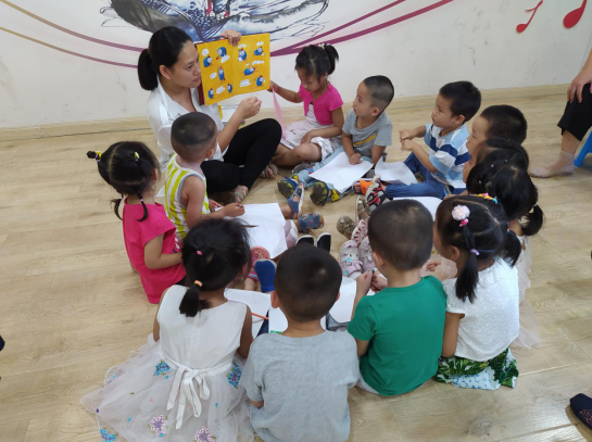 說(shuō)到中國(guó)娃娃,就不能不提到年畫。年畫是中國(guó)的一種古老的民間藝術(shù),和春聯(lián)一樣,起源于“門神”。年畫的題材非常多,也都承載著美好的寓意,在年畫里面,最常出現(xiàn)的人物,就是白白胖胖的娃娃,有的地方稱之為“阿福”、“福娃”、“金童玉女”、“童子”等,因?yàn)槭仟?dú)特的中國(guó)元素,我們也稱之為“中國(guó)娃娃”。在簡(jiǎn)筆畫環(huán)節(jié),志愿者老師讓小朋友們根據(jù)自己對(duì)“中國(guó)娃娃”的想象進(jìn)行繪畫,小朋友們充分發(fā)揮想象力,繪畫、上色,不一會(huì),一幅幅獨(dú)特的“中國(guó)娃娃”就呈現(xiàn)出來(lái)了,繪畫的同時(shí)大家體驗(yàn)著創(chuàng)作的樂(lè)趣。繪畫完成后,還進(jìn)行了合唱歌曲、手指謠、英文兒歌等環(huán)節(jié)。