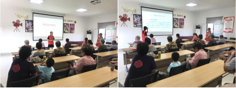 社工通過PPT的形式用通俗易懂的語言給在座村民們介紹了“什么是殘疾預防日”、“什么是殘疾預防”,舉例依次說明了“視力殘疾、聽力殘疾、肢體殘疾、智力殘疾、精神殘疾”的概念,圍繞“如何預防殘疾的發(fā)生”、“后天性致殘因素的防范措施”等方面進行詳細闡述。隨后,播放關于意外致殘的短片警示村民們正確生活習慣的重要性。