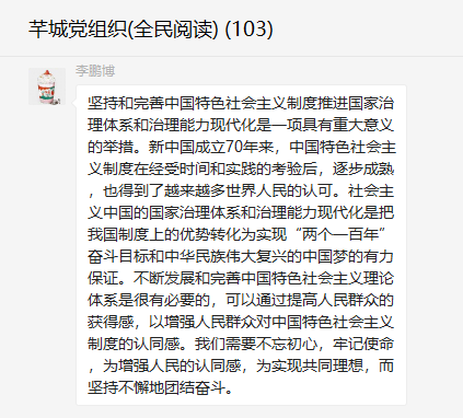 百水芊城社區(qū)依據(jù)街道黨工委部署制定本年度學(xué)習(xí)計劃,本月組織黨員線上點擊學(xué)習(xí)《堅持和完善中國特色社會主義制度推進國家治理體系和治理能力現(xiàn)代化》、《<中共中央關(guān)于堅持和完善中國特色社會主義制度、推進國家治理體系和治理能力現(xiàn)代化若干重大問題的決定>輔導(dǎo)讀本》,了解圍繞中國特色社會主義制度的生成邏輯與顯著優(yōu)勢,中國特色社會主義制度建設(shè)的歷史進程與基本經(jīng)驗,國家治理現(xiàn)代化與全球治理等要點,黨員們在學(xué)習(xí)后也紛紛暢所欲言,進一步明確了方向、增強了信心、強化了責(zé)任感和使命感。