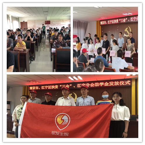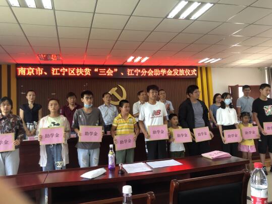 孟秋季節(jié)艷陽照,碩果累累欲飄香。8月20日,南京市江寧區(qū)江寧街道荷花社區(qū)聯(lián)合南京市扶貧開發(fā)協(xié)會、江寧區(qū)扶貧開發(fā)協(xié)會、江寧區(qū)扶貧開發(fā)協(xié)會、江寧街道分會在社區(qū)二樓會議室召開了2020年度扶貧助學(xué)金發(fā)放儀式。南京市扶貧“三會”張寧生會長、高遠(yuǎn)航副會長、盧正生秘書長、南京希元生物醫(yī)藥科技有限公司劉勇業(yè)董事長、江蘇華瑞國際實(shí)業(yè)集團(tuán)有限公司楊春燕主任、南京埃倫嘉輝友誼服裝有限公司金濤經(jīng)理、環(huán)宇集團(tuán)(南京)有限公司朱程琴主任、江寧區(qū)扶貧“三會”孟向前會長、南京市委老干部局劉薇主任、江寧街道黨工委組織委員朱宗繼及荷花、西寧社區(qū)負(fù)責(zé)人等出席發(fā)放儀式。