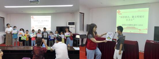 為深入推進文明城市創(chuàng)建工作,引導(dǎo)轄區(qū)居民文明規(guī)范養(yǎng)犬,南塑社區(qū)物業(yè)分公司攜手楓盛家綜黨支部開展以“科學養(yǎng)犬,做文明城市小衛(wèi)士”為主題的暑期未成年人活動?;顒娱_始前,社區(qū)利用“掌上云社區(qū)”微信群向轄區(qū)小朋友們征集關(guān)于“文明養(yǎng)犬”主題的畫作,得到居民朋友熱烈響應(yīng)。活動中,小朋友們帶著精心畫的畫在家長的陪同下興高采烈地來社區(qū)參加活動?;顒悠陂g,孩子們積極舉手要上臺分享自己畫作的內(nèi)容,通過趣味的畫作、稚嫩的語言將文明養(yǎng)犬的理念傳遞給大家?;顒咏Y(jié)束后,社區(qū)通過將小朋友們的作品收集起來制作成宣傳海報向廣大居民朋友進行宣傳,并免費向社區(qū)內(nèi)有犬家庭發(fā)放牽引繩、倡議書,呼吁社區(qū)居民“文明養(yǎng)犬,從自己做起!”
