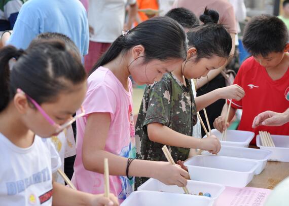 “恭喜獲勝!這是屬于你的小紅花。”剛剛在套圈游戲中連中三次的陳媱小朋友,一臉興奮的遞過(guò)門票,志愿者立即在反面粘上了代表勝利的標(biāo)志。下午五點(diǎn),一段激情澎湃的架子鼓表演吸引了往來(lái)的路人,由社區(qū)七彩少年帶來(lái)的打鼓、吉他彈唱,正式拉開活動(dòng)帷幕。愛(ài)心義賣、泡泡體驗(yàn)、墻繪,同時(shí)進(jìn)行。吹乒乓球競(jìng)速、夾彈珠、套圈、翻紙牌等小游戲精彩紛呈。社區(qū)還提前為大家準(zhǔn)備了一片片西瓜解暑,孩子們本著節(jié)約的意識(shí),每個(gè)人將拿到的西瓜吃得干干凈凈。